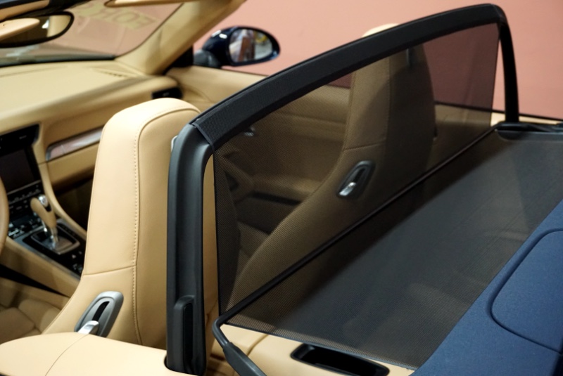 This 2015 Porsche 911 Carrera 4S cabriolet comes with a dark blue metallic exterior and a leather beige interior.