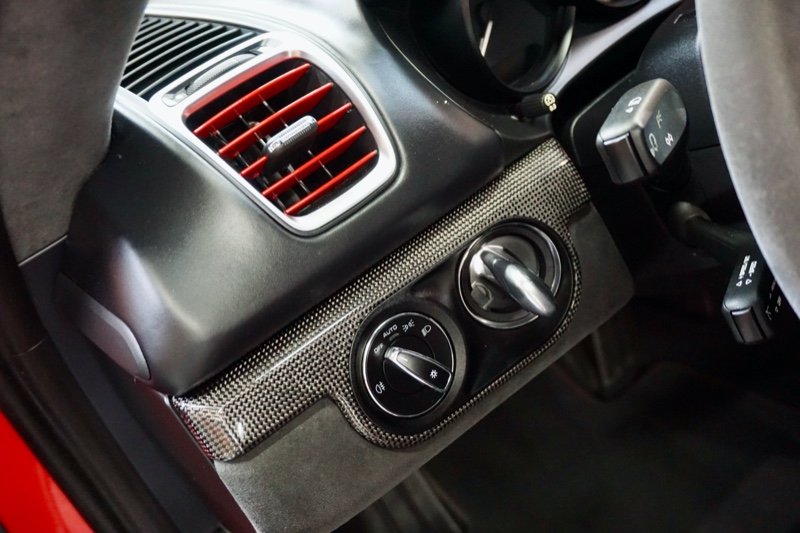 The exterior is painted a deep carmine red while the interior is wrapped in black leather with Acantara throughout including the steering wheel and shifter. Red stitching accents are tastefully done along with red edging on the seatbelts. Red GTS stitching in the headrests along with red air vent slats and carbon fiber inserts complete the GTS Interior Package.